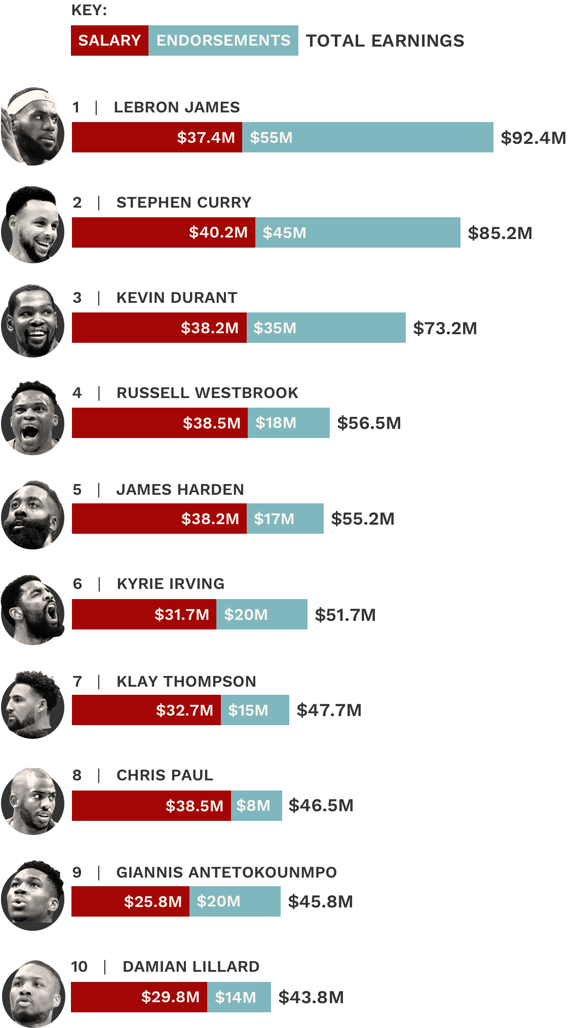 The Nba S Highest Paid Players 2019 20 Lebron James Scores Record 92 Million